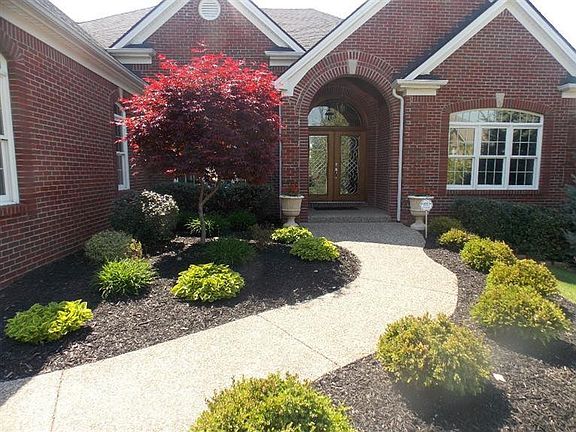 This house is the perfect package! Single story ranch on a walk-out basement sitting on award winning Cherry Blossom Golf Course. Enter this beautiful home from a covered entry with bead board ceiling and double wooden front doors. In the foyer your eye immediately sees the attention to detail with custom crown molding and trim work everywhere. A formal dining room is waiting to serve a meal prepared in the 2011 re-designed kitchen that boasts new cabinets, granite countertops, backsplash, hardwood flooring and stainless appliances. The family room offers an abundance of natural light with a section of windows looking out onto the covered deck area. The master bedroom with designer ceiling and master bath will make you never want to leave. Offering a double vanity, separate shower and tub and also his&her closets! The basement area currently has a bedroom with a workout area, home office area and a family/entertainment room. Basement also offers a HUGE aux. garage & storage space