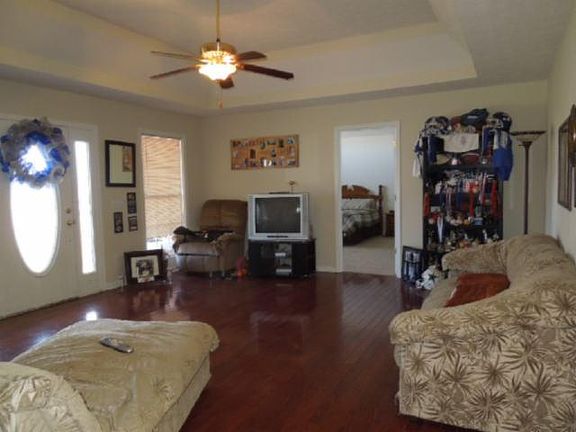0.70 ac with a lovely brick ranch home with 3BD/2BA, approx. 1596 sq ft, built in 2004, kitchen and dining room combo, trey ceilings, fire hydrant on the property (reduces home insurance), tile - carpet & hardwood flooring, custom kitchen cabinets and molding.Natural gas heat. Covered front porch and covered back deck. 12X20 outbuilding. Modest restrictions. Well maintained home in the well-established Deerwood Estates.