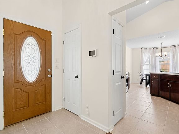 Charming 3-bedroom home with added office space in the popular Lake Victoria community. A welcoming foyer with wainscoting and hooks for coats, bags, and keys sets the tone. The open-concept living and dining area features vaulted ceilings and a cozy stone corner fireplace. A sunny breakfast nook connects to the fully equipped kitchen with stainless steel appliances, white solid surface counters, subway tile backsplash, and a black granite composite sink on the peninsula. The office off the kitchen features a unique closet door with built-in bookshelves, perfect for additional storage. The primary suite includes a tray ceiling with recessed lighting, a deep walk-in closet with custom built-ins, a granite-topped vanity, a garden tub, and a separate shower. Bedroom 3 includes upper-wall custom bookshelves, and the living room is accented by traditional-style wall sconces. Ceiling fans are installed in all bedrooms and the living room. The exterior was recently painted, and the fenced backyard includes an extended paver patio, and fire pit for outdoor enjoyment. The property line extends beyond the fence into a wooded buffer, apx 25+ feet more, for added privacy. Conveniently located:**approximate distances* 1 mile to Camden County High School, 1.2 miles to Camden Middle School, 2.8 miles to Howard Peeples Park, 3 miles to Chick-fil-A, 6 miles to NSB Kings Bay, 25 miles to Fernandina Main Beach and Jacksonville International Airport, and 36 miles to Brunswick. Thoughtful upgrades, a great layout, and a convenient location make this home an excellent choice. Schedule your showing today!