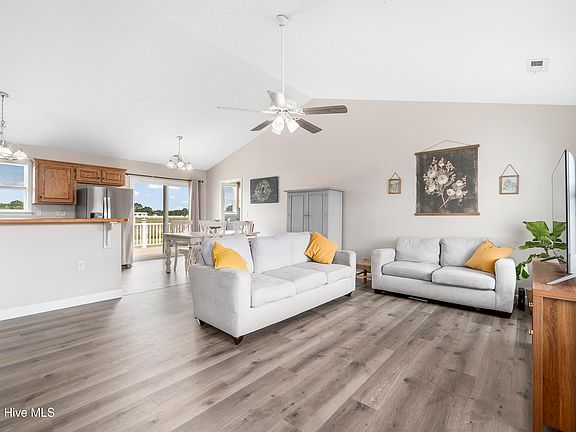 Welcome home! Enjoy the peaceful surroundings of this welcoming neighborhood. No HOA. A cul-de-sac lot on an acre of land to call your own. An open-concept floor plan invites you into the home with cathedral ceilings & bright living room space. The kitchen has all new stainless-steel appliances, solid oak cabinets and an unfettered view of nature out the back. The dining area includes a slider for refreshing airflow & views and leads into a hall laundry area with a half bath & door leading to a large 2-car garage. Great FROG space for an office, playroom, yoga studio - you name it! Mini split in the space for year-round comfort. Three bedrooms are nestled on the left side of the house with a hallway bathroom with tub/shower combo. Primary suite with calming views and an ensuite bathroom. Lots of storage space in the full floored attic with pull down stair access. End your day relaxing on the low-maintenance Trex deck. Watch the sunset while breathing in that fresh country air. It doesn't get much better than this folks! Ten minutes to Elizabeth City for shopping, restaurants, and local businesses. 20 minutes to the Coast Guard Base.