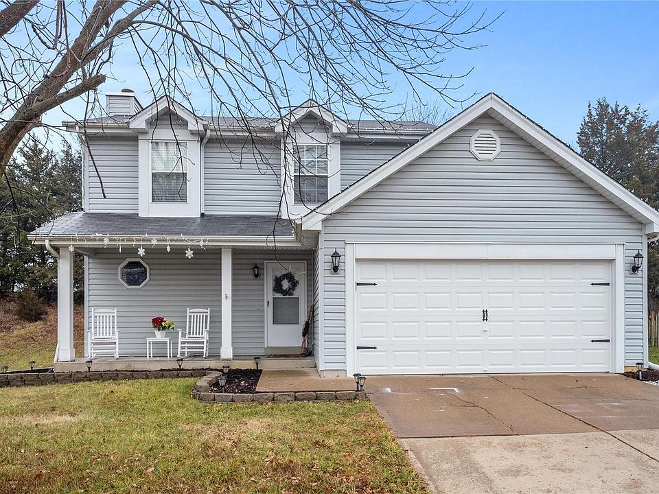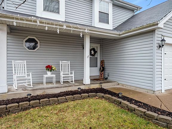 Excellent location in Wentzville school district. 3 bedroom 2.5 bath home with a spacious kitchen that has a beautiful bay window and walk out patio doors. Spending your evenings in front of the cozy wood burning fireplace, or sitting on your front porch to enjoy view of the neighborhood fishing pond and sunset! The Master Bedroom has a walk in closet, ceiling fan, and full bath. All that and a partially finished basement with plenty of storage. It's such a great value with the vinyl siding and covered front porch, concrete patio, a 2 car garage. Great neighborhood to raise the kids! Located near all the conveniences on Wentzville Parkway