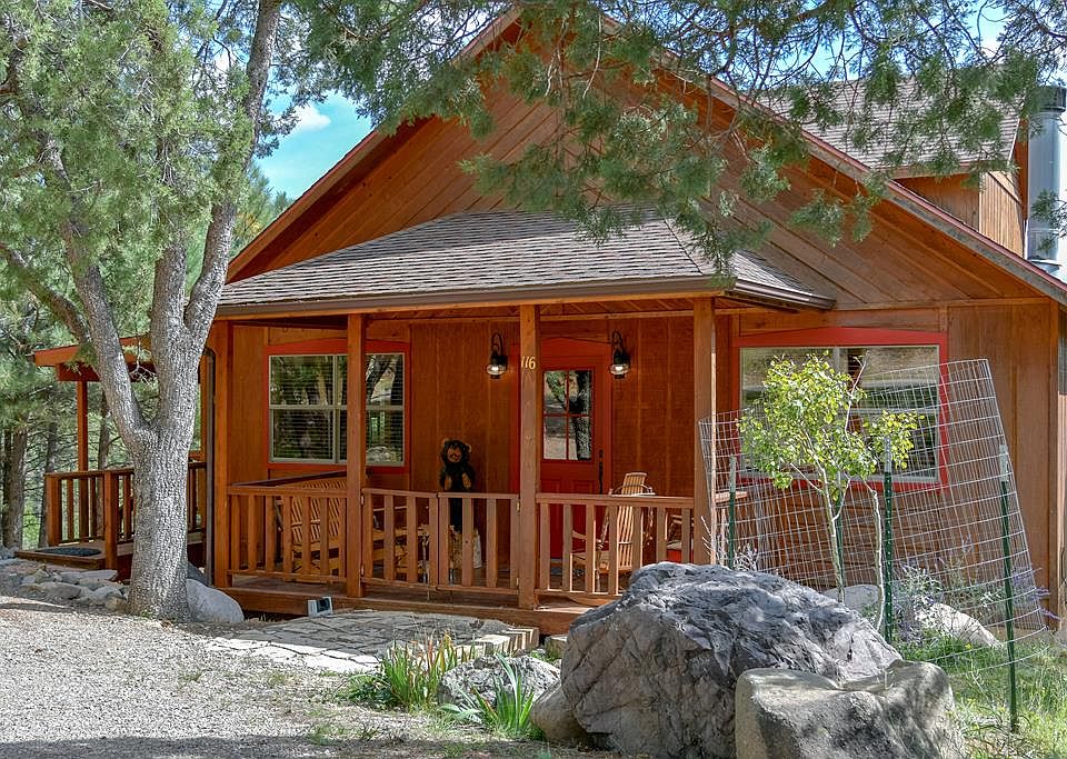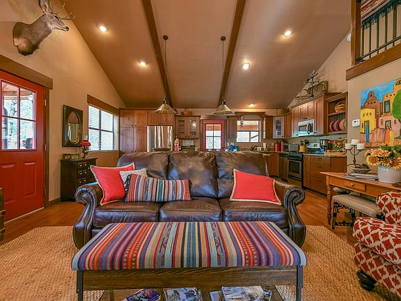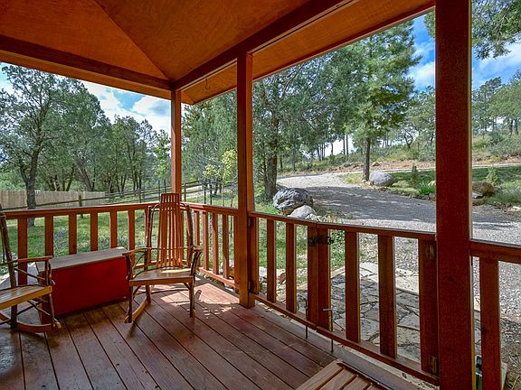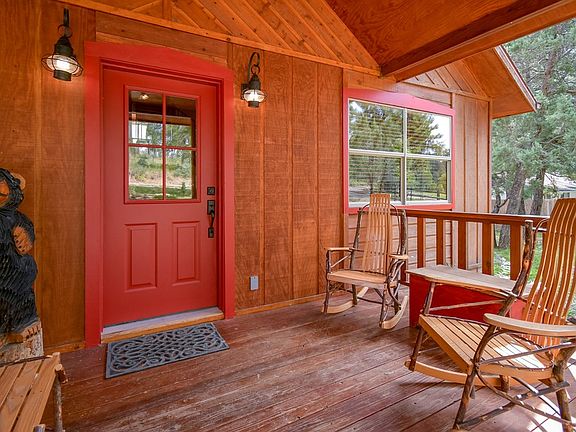 This 3 bed/2 bath Mtn Cabin has been beautifully updated to provide modern mountain living, indoors & out. The open concept kitchen/living area includes a large granite island/dining bar which seats 6, a wood-beam accented ceiling & a large stone fireplace. Just off the living area are two bedrooms, one bath & laundry space. Master Bedroom with en-suite bath is found up the stairs, offering privacy when guests are present. The covered front entry provides room for several benches and/or chairs & offers level entry from the circular drive. Plenty of outdoor living with three decks total; two covered & one wrapping from the kitchen. Rock patio found at ground level for additional conversation.