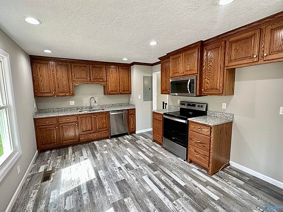 RAINBOW CITY- RENOVATED- BASEMENT/FLEX SPACE- Beautifully remodeled 3BDRM/2.5BTH family home, conveniently nestled on double lots on a quite dead end street in Rainbow City. Spacious family room w/ new LVP flooring, open to eat in dining & kitchen. Kitchen w/ granite, ample cabinets & stainless steel appliances! Plush master w/ walk in closet, granite vanity top & stand up shower. Killer basement area w/ fireplace, playroom area & 1/2 bath! Private deck perfect for BBQ's/relaxing overlooking the ideal spot for a jungle gym etc. New windows, new granite, new LVP flooring, new paint, new plumbing etc!