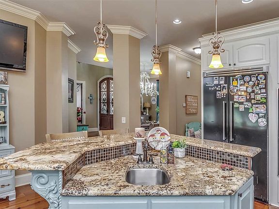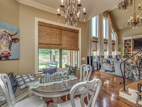 JUST REDUCED!!!! VERY MOTIVATED SELLER!!! BEAUTIFUL WATERFRONT HOME IN GATED COMMUNITY! You will fall in love with this gorgeous 4 OR 5 Bedroom 4.5 BA home! With wonderful heart of pine flooring, high ceilings, custom carpentry work throughout, marble, granite and tile, fabulous light fixtures, A luxurious master suite like this one is rarely seen! The master bedroom features an elevated bed platform along with a built-in automatic hideaway television cabinet and two walk-in closets. This amazing master bath features a large shower that is also a steam sauna, and an over-sized raised garden tub with floor to ceiling custom tile and marble work! There is also a separate room within the master suite that could be used as a nursery, work-out room, office, whatever your need may be! The first level also includes a front room with private bath, that could be used as a bedroom, office or study. The great room has the most amazing floor to ceiling windows that allows for plenty of natural lighting and a great view of the lake! It also has a lovely fireplace with gas logs. The gourmet Viking kitchen features a large island with extra sink, plenty of cabinetry, storage and a breakfast area with a built-in bench. There is a beautiful formal dining off the foyer entry, a Large mud room, with great built ins, Guest Half-Bath, and a pantry with lots of shelving. A beautiful wood and iron staircase leads to the second level landing/sitting area that opens to two bedrooms with separate baths. Then, atop a separate staircase on the other side of the house is a bonus suite that features it's own living area, bedroom, bathroom and a built-in desk/study area, could easily be turned into a theatre room, it's already wired for projector and surrond sound! Out back by the lake is an awesome fire pit perfect for making smores with the family or just enjoying the beautiful views. This is such a wonderful home for a family and for entertaining, with a spacious, well laid out floor plan, this home is a true WATERFRONT dream home, call your realtor today before it's gone!