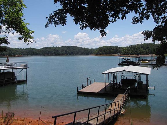LAKE HARTWELL WATERFRONT HOME nestled in large hardwoods. Over 3,200 sq. ft. with good, deep water and great views. Inside features living room and den with fireplace and access to huge covered lakeside porch; large Master Bedroom that opens to the porch has an upgraded bath with shower, jetted tub and nice dressing area. Finished walk out basement has common area with wet bar and is large enough for ping pong or pool table and lots of entertaining PLUS two bedrooms and an additional room currently used as a bedroom that could also be an office or exercise room. Two HUGE lakeside porches have great views of the Seneca River and are perfect for grilling, entertaining or just enjoying the lake. Plenty of good, deep water frontage with covered slip dock make getting on the water quick and easy.