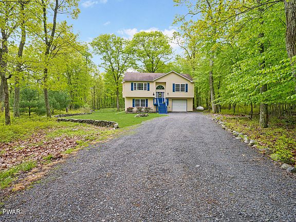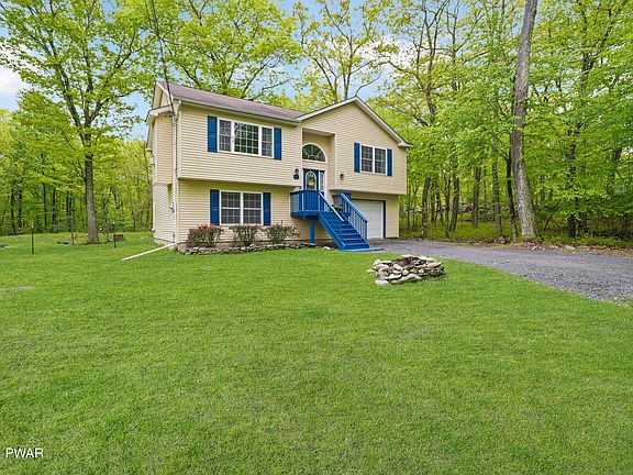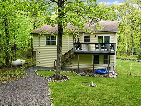 PEACE & PRIVACY SEEKERS LOOK NO FURTHER! THIS BEAUTIFUL BI-LEVEL BACKS UP TO 397 ACRES OF FEDERAL LAND PROVIDING ADDITIONAL PRIVACY AND SCENIC BEAUTY! ENJOY THE UNMATCHED TRANQUILITY OF THIS NEIGHBORING PROTECTED AREA! From the moment you pull into the driveway of this desirable property you will feel as though you have been transported to your own piece of heaven. Enjoy lovely landscaping and great curb appeal from the outside. Inside you will be equally impressed! This immaculate 3 bedroom, 2 bathroom home offers two sensational floors of finished SQFT. Upstairs, enjoy upgrades that include hardwood floors, cathedral ceilings, a propane fireplace, propane hot water baseboard heat, stainless steel appliances, and a wonderful gas range. The view from your back deck overlooking your backyard oasis and towering tree-tops will provide the perfect atmosphere for relaxation or entertainment. Two spacious bedrooms and a full bathroom complete the main floor. Your lower level boasts a 3rd bedroom and bonus family room which could be used as a 4th bedroom, home office, home gym or play room! A 2nd full bathroom, laundry and garage complete the lower level. An attractive and purposeful shed provides tons of storage outside! Located in beautiful Pike County which offers the best of both worlds; wildlife with tons of hiking, waterfalls, rafting, skiing, snow shoeing, and more PLUS a nightlife of great restaurants, breweries, live theater, shopping, and more! NEW PROPANE BOILER BEING INSTALLED! FENCED YARD! A/C/HEAT SPLIT WALL UNITS! Portable generator hook-up and attic storage!!! PLUS - The listing agents are offering a FREE 1 year home warranty to the lucky buyer of this beautiful home. Take the 3D Matterport Virtual Tour and schedule your showing today!