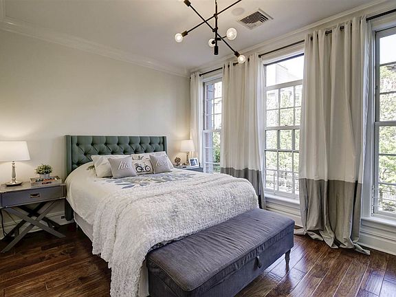 Stunning 5-story townhome with top-of-the-line finishes and multiple condo amenities. Spacious home with high ceilings, a large family room and private yard. Condo amenities at 10 Regent Street, including concierge/doorman, gym, Jacuzzi, billiard/game room, movie theater, kids room, event room and BBQ area. Plus access to the gorgeous pool at 30 Regent Street as well as on-site parking available for an ancillary fee. Your own independent townhome in the best location with top-of-the-line finishes PLUS condo amenities in this West Village-inspired neighborhood. Fabulous location steps to the PATH, Light Rail, and ferry for easy access to Manhattan. Walk to the farmers' market and playground at Van Vorst Park; enjoy Grove Street and Newark Ave pedestrian walkway and the many restaurants, bars, and shops in the downtown Jersey City. View the Freedom Tower from your sitting room; dine and entertain al fresco in your private fenced patio; be a master chef with Viking appliances, a SubZero fridge, granite countertops and modern backsplash. This incredible home also features full-size LG washer and dryer, enormous master bathroom with dual vanities, soaker tub and separate shower. Take advantage of storage with oversized closets. This 2421 sqft 4 br, 3.5 bath home features cherry hardwood floors and a finished basement.