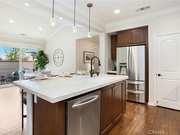 Welcome to your exquisite new home situated in the prestigious and acclaimed community of Rancho Mission Viejo! Step into the tranquility and security of this remarkable 55+ gated community known as Gavilan Sendero, the sole gated community within RMV. This single-level residence boasts an inviting open floor plan, meticulously designed with your comfort and enjoyment in mind. Immerse yourself in the spaciousness of this 3-bedroom home, featuring a seamless flow between the dining room, living room, and an expansive kitchen island that serves as the heart of the home. The elegant backyard, spanning across a generous 4000 sq ft lot, showcases immaculate low maintenance landscaping, offering the perfect setting for entertaining. It also features a private gate that grants access to the nearby playground in Sendero, offering a haven of enjoyment for the grandkids. Revel in the delightful ambiance and meticulously crafted details, such as custom built-in cabinetry, crown molding, and recessed LED lighting. The grandeur continues in the expansive great room, adorned with a vaulted wood beamed ceiling. Some other features are Taj Mahal marble kitchen counters and backsplash, expansive great room with vaulted wood beamed ceiling, travertine in bathrooms, epoxy, custom storage in garage, fans throughout rooms, spacious walk-in closet in primary, walk in shower in primary bathroom, and so much more. Enjoy a resort lifestyle at multiple clubhouses like the Hacienda, The Getaway, The Outlook, The BBQ Barn, with extensive amenities including a fitness center, salt-water pool, spa & cabanas, bocce ball, yoga studio, fire pits and tv screens. Plus, when you have the grandkids in town, you’ll have access to all the Award Winning RMV community amenities for those of all ages. Top it all off, 116 Lindura is only five miles from South Orange County’s sought-after shores!