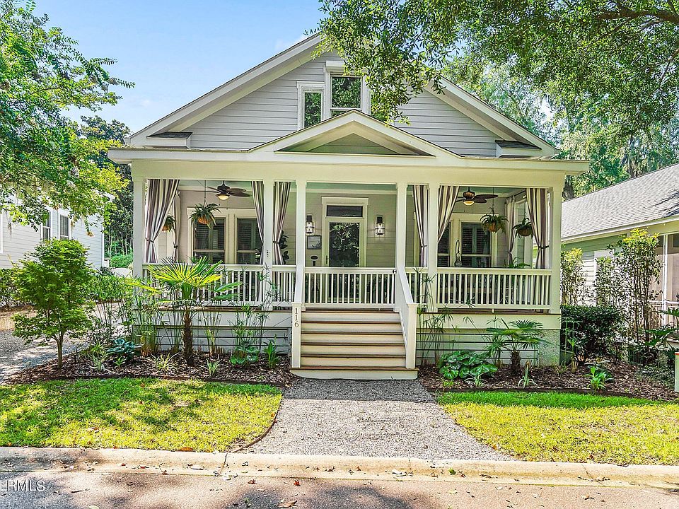 If you are looking to live in the vicinity of Downtown Beaufort, 116 Lyford Pl will offer you that desirable location and so much more! Situated on a cul-de-sac in the Depot area, minutes from downtown and the Spanish Moss Trail, this custom home provides a spectacular living space in a great location. A full-length front porch, accented with appealing landscaping, leads you into the home where you are greeted with an open-floor plan offering great attention to detail. Wood floors and crown molding flow throughout. The kitchen features custom cabinetry, stainless steel appliances, and bar seating. The primary suite is on the first floor and includes a walk-in closet and a bathroom with dual sinks and a large walk-in shower. Two additional bedrooms and a bathroom are on the second floor. A screened porch allows for comfortable outdoor entertaining or relaxation. A one-car detached garage completes the home. Owner updates include General Whole House generator, kitchen cabinet addition, lighting, front porch dog gate and ceiling fans, and HVAC deck enclosure. Lyford Place is a private community minutes from Bay Street of downtown where you'll find restaurants, shops, festivals, the Marina and the Waterfront Park. Also nearby is the Spanish Moss Trail consisting of over 10 miles of a paved path for walking, running, biking, and fishing. Marsh and water views and historic points can be appreciated along the trail. This well-maintained home in a fantastic location offers the opportunity to enjoy all that Beaufort has to offer!