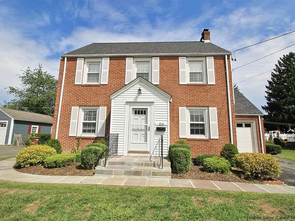 Beautiful brick Colonial in the lovely Roosevelt Park Neighborhood. Tranquil and convenient, sitting in the perfect place for anything you desire. Three Bedrooms (small bonus room/office off #3) 1 1/2 Bath. Refinished hardwood floors throughout the home. Gas insert in the fireplace however wood-burning unit works. Den off of living room leads to the covered Pergola(wonderful vines), concrete patio w/electric. Boiler, hot water heater and roof are all fairly new.Replacement windows. This home is 5 minutes to Midtown, Uptown, Downtown Kingston as well as all of The Town of Ulster has to offer.