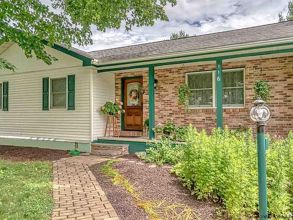 Welcome to 116 Main St! This lovely three-bedroom one bath ranch with brick fireplace, large eat-in kitchen and hardwood floors is in an incredibly convenient location! Relax and enjoy the beautiful brick front porch or back deck equipped with a doggy door. The full, unfinished basement offers ample room to expand the living space with walk out access to the well-maintained back yard. One car attached garage leads to a mudroom/laundry room. Updates to the home include fresh paint, new Berber carpet in the bedrooms, new electrical panel and new appliances. Come check out this home, I think you will be happy you did! Please remove shoes when viewing/showing the home. After showing please ensure all lights are turned off and all the doors are locked.