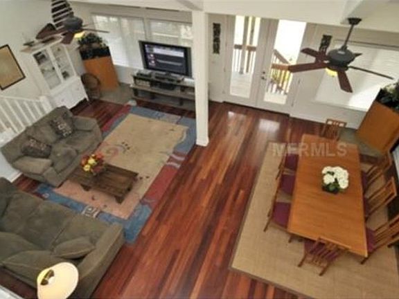 VACATION RENTAL ONLY! PRICES VARY BASED ON TIME OF YEAR AND LENGTH OF STAY. WEEKLY RENTALS AVAILABLE! Located on one of the prettiest streets in the village of Anna Maria, this lovely 4 bedroom, 2 and a half bath home is just 7 houses away from the beach. The quiet, tree-lined street evokes memories of Florida Gulf Coast islands in days gone by, with a shaded path providing access to the island's fabulous white-sand beach and crystal-clear Gulf waters. When you're not out soaking up the sun, enjoythe comfortable surroundings of home, with exotic hard wood floors in the living and dining room, Mexican tiles in the kitchen, and vaulted ceilings with an open walkway upstairs. The open living area features a large dining table and comfortable sofasfor kicking back to watch the large flat-screened t.v. Granite counters and a gas stove make the kitchen especially attractive and functional, while the laundry room off the kitchen is perfectly positioned for convenience. Behind the kitchen is a half bath across from a bedroom with a twin daybed and trundle, with the master bedroom and bathroom beyond. Two additional bedrooms are at the top of the open staircase, along with another full bathroom.