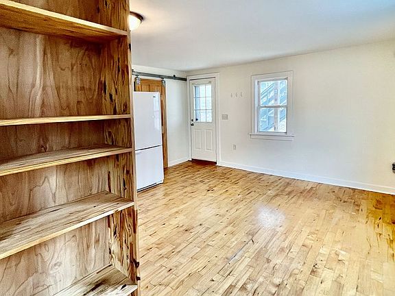 Private front patioSeparate first floor entranceNatural wood built-in bookcaseAbundant natural light