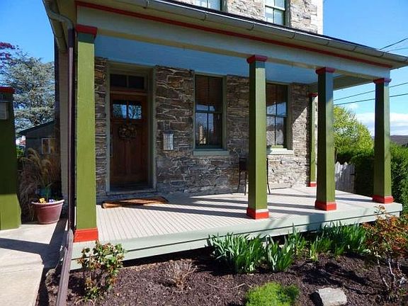 Classic stone colonial offers charm and modern conveniences. Remolded kitchen has cherry cabinets and center island. Family room addition has vaulted ceilings, wood floors, skylights and gas fireplace for winter nights. Bonus features include deep window sills and architectural moldings. A block from the river!