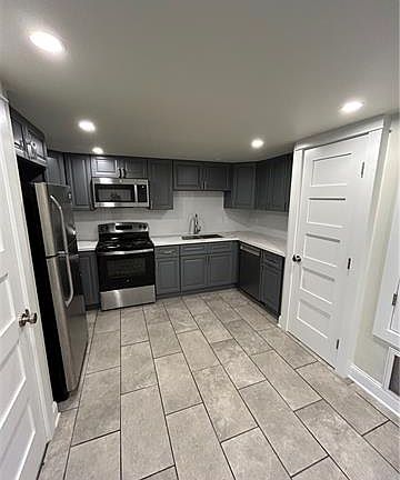 This unit has been totally redone with new tile flooring, new cabinets and stainless steel appliances in the kitchen, and new vanity and shower in bath. There is a laundry room downstairs for the tenants.