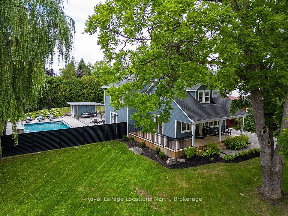 Welcome to 116 Marsh Street, a beautifully renovated 4-bedroom home just a short walk to the village of Clarksburg and minutes from downtown Thornbury. Nestled on a spacious lot with award-winning landscaping and surrounded by mature trees, this residence offers the perfect balance of modern comfort, thoughtful design, and an unbeatable location close to Georgian Bay, the Georgian Trail, golf, and world-class skiing. The inviting covered front porch with recessed lighting provides escarpment views before stepping into a light-filled open living space framed by serene views. The custom kitchen is complimented with quartz counters and stainless appliances. The main-floor primary suite offers a private retreat with a generous walk-in closet, luxurious ensuite bath with in-floor heating, and walk-out to the backyard. A 2-piece powder room, laundry, and mudroom complete the main level. Head up to the second level and discover a spacious family room, separate office nook, three additional bedrooms, and a stylish 4-piece bath also with in-floor heating, ideal for family or guests. Every detail of this home reflects quality craftsmanship and care, making this property truly move-in ready. Step out to the award-winning outdoor oasis, crowned with the 2024 Landscape Ontario Award of Excellence and featured in Our Homes Magazine ( Mid-Summer 2025). A spectacular 36'x18' saltwater pool with cascading waterfalls, precision stonework, a modern pergola, lush gardens, fire pit, and hot tub - an entertainer's dream and a secluded retreat in one. With its combination of location, contemporary finishes, and exceptional outdoor living, 116 Marsh Street offers an unparalleled opportunity to experience the best of Southern Georgian Bay living.