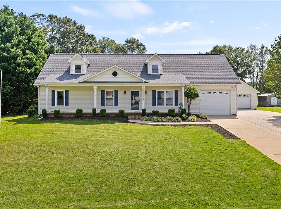 Perfectly positioned between Greenville & Anderson and just minutes from Saluda Valley Golf Course. Country charm meets modern upgrades! Relax on the covered porch, gather around the built-in firepit, or tinker in the extra garage. The entire upstairs has been transformed into a huge private primary suite with new full bath! Other updates include: brand-new roofs on ALL buildings, gas added to the kitchen with a new stove, a new upstairs HVAC, crawlspace dehumidifier & vapor barrier! This one’s move-in ready — and it’s gorgeous.
