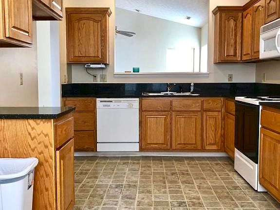 One level living just steps from walking trail at the lake. Well maintained ranch home on a quiet cul-de-sac. Lots of features you'd find in a more expensive home: 9 foot ceilings throughout, vaulted ceilings in living room and dining area, solid surface counters, no carpet anywhere. Freshly painted and move-in ready. All appliances including washer and dryer remain. Enjoy your morning coffee on the back porch while watching the birds in your wooded backyard.