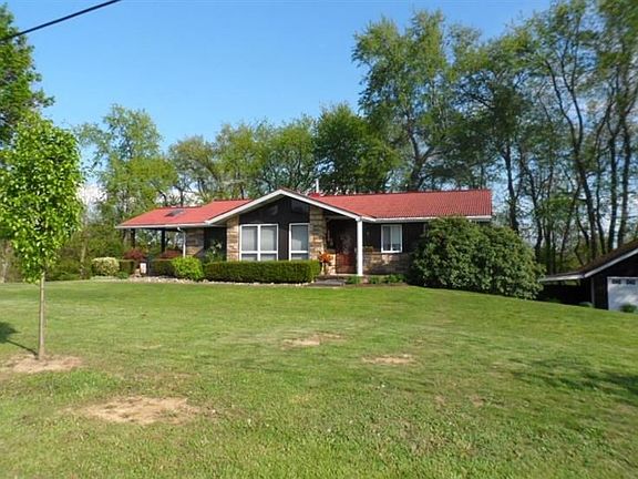 This stunning stone and wood contemporary ranch home sits on very nicely landscaped 1.24 acres in Carmichaels on a dead end street and bordering a large wooded parcel. Features a new kitchen (2016) with stainless steel appliance package, 2 new baths with double bowl sinks (2017), fresh paint throughout, full basement with a large family room and tons of storage, a large side porch, a 2 car detached garage with additional storage in rear and underneath, paved driveway, and newly extended parking area.