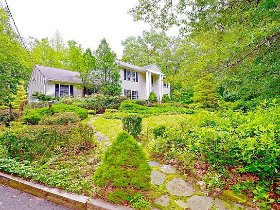 Set far back from the road, this traditional, center-hall colonial offers privacy! Stately columned, double-door entry, bluestone slate-floor foyer, formal LR and large formal DR. Kitchen with eating area and sliders to deck with a gazebo. Comfy family room with raised hearth, exposed-brick wall. French-door entry to LR provide for great entertaining flow. Large, bright laundry room and half-bath complete the first floor. Master bedroom with walk-in closet, ensuite bathroom. Three additional large bedrooms, all with serene property views. Full basement, 2-car attached direct-entry garage and fenced yard welcome you to a lush and peaceful homestead!