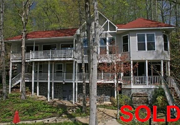 Once your friends and family arrive at your home for the weekend, there is never any reason to leave. This retreat has everything you could want in a weekend getaway! The main floor has a very inviting Great Room with fireplace, hardwood floors and awesome lake views. Gather around the table in the formal lake view dining room or just have a casual meal at the breakfast bar. Two guest rooms and a full guest bath insure plenty of room for the adults. The oversized lake view Master Suite and private bath complete the main level. Enjoy the sounds of the large outdoor waterfall as you sleep. The lower level is perfect for the kids or evening entertaining. Downstairs you will find a huge lake view billiards room complete with fireplace. The children will enjoy the feel of the lake house Bunk Room, designed just for them. Two screened lakefront porches have all the room you need to entertain the entire family. The covered hot tub offers lake views while you enjoy the best Lake Lure has to offer! Not enough? How about two boat houses complete with an enormous roof top deck and diving board for the kids! Grab your chair and sit on your own private sandy beach while the kids play in the shallow inviting lake waters. PROPERTY FEATURES - Lakefront Retreat - Main Channel Location - Giant Home - Two Levels - 3 Bedroom - 4 Bath - Big Great Room - Lake View Master Suite - Master on Main Floor - Lake View Dining Room - New Bathrooms - Two Screened Porches - Billiards Room - Kids Bunk Room - Decks Galore - Hot Tub - Two Boat Houses - Waterfall - Waterfront Deck - Private Sandy Beach - Two Rock Fireplaces - Home Warranty! - Easy Access From Road - Much, Much More!