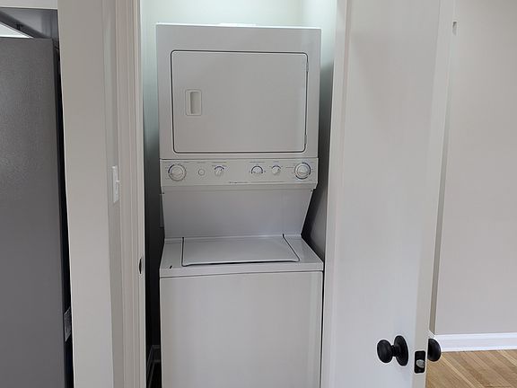 This fully renovated 2 bedroom, 1 bathroom, apartment is part of a duplex and includes a single bay garage and a basement! The entire apartment top to bottom has been updated! There's ample closet and storage space. All appliances are included! (stove, microwave, dishwasher, refrigerator, garbage disposal, washer and dryer stack). Outside the unit has a covered front porch, a small back patio area surrounded by all new landscaping, and a refreshed gravel driveway.