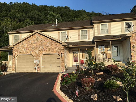 Rattling Run, North Schuylkill Schools. Well maintained, move in ready, 3 bedroom, 2.5 bath townhouse with a 1 car attached garage and full basement. Enjoy the serenity of being tucked away at the base of a mountain with the restful sound of a babbling stream at the rear of the property while you sit on the front porch or deck. Capitalize on the features of a modern townhouse without the overhead of an HOA fees. Plus this home has extremely economical utilities and natural gas heat and hot water. All appliance remain. Ample closet and storage space. Open floor plan on the first floor. Oak kitchen with island and pantry. Owners suite has 2 large closets and its own private bath. Easy access to Route 81 and 61, close to the High Ridge Business Park.