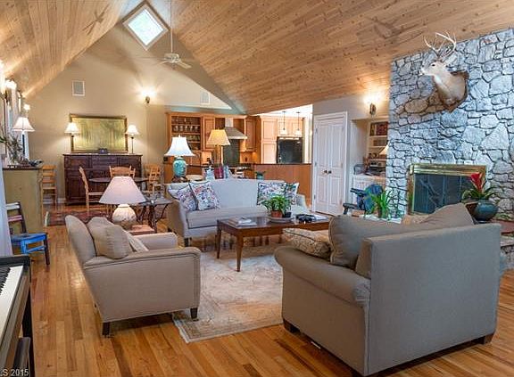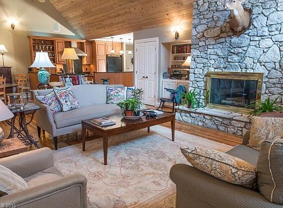 Beautiful 4br/3.5ba offers mountain feel, natural light, practical comfort. Glass door foyer,inviting great room w/view to contemporary kitchen. Large windows high in peaks of wood cathedral ceilings. Granite surrounds wood FP. Screen porch,peaceful sounds of rock water-feature. Native landscape. Perfect for entertaining. 2 masters on main. Lower lvl:4 rooms,full bath. Well built,well maintained, energy efficient,level access. Montreat conf center area rental potential,mostly furnished.