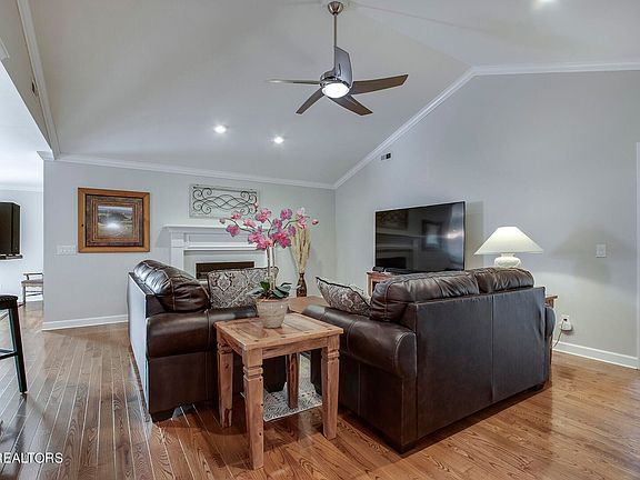 Welcome to your dream home in the Royal Oaks is one of the most popular neighborhoods in the heart of Maryville! This stunning all-brick, one-level ranch-style home offers the perfect blend of elegance, comfort, and convenience. With lawn maintenance included, you can spend your time enjoying the many features this home and location has to offer. As you step onto the covered front porch, you'll immediately feel welcomed into the spacious foyer. Inside, you'll find a fully updated and well-maintained interior with hardwood and tile floors, granite countertops, cathedral ceilings, crown molding, and ample storage space including linen closets and large walk-in closets. The open floor plan is ideal for entertaining, with a spacious family room boasting cathedral ceilings, crown molding, and a cozy gas fireplace. The second bedroom is also generously sized, perfect for guests or a home office. The gourmet kitchen is a chef's delight, featuring stainless steel appliances, a large breakfast bar, brushed nickel cabinet hardware, and plenty of storage space. The adjacent dining area offers ample space for hosting gatherings of any size. One of the highlights of this home is the large four-season sunroom, complete with hardwood floors, abundant natural light, and built-in cabinets with shelving - the perfect spot to relax and enjoy the view. The oversized primary bedroom suite is a true retreat, featuring hardwood floors, a trey ceiling, crown molding, and a luxurious ensuite bathroom with double sink vanity, tiled walk-in shower, separate jetted tub, and custom-built walk-in closets. Additional features include a huge laundry room with built-in cabinetry, a utility sink, and washer/dryer included, as well as a second full bathroom with updated fixtures and tile surround. With 2-inch blinds throughout, beautiful natural lighting, and low maintenance brick exterior, this home is truly a gem. Don't miss out on the opportunity to make it yours - call today!