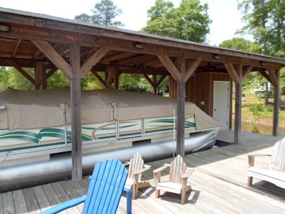 EXTRA CLEAN AND WELL MAINTAINED LAKE HOME WITH HARDWOOD FLOORS AND TILE THROUGHOUT. ALL APPLIANCES INCLUDING REFRIGERATOR, WASHER, DRYER, BUILT-IN MICROWAVE, DISWASHER, AND 42 INCH FLAT SCREEN TV CONVEY. THIS EXCEPTIONAL SITE-BUILT HOME IN PRIVATE PART OF LAKE SINCLAIR FEATURES 168 SQFT OF SHORELINE AND SINGLE BOATHOUSE BUILT IN 2007 WITH BOAT AND PWC LIFTS. GREAT FISHING IN THE 300+ ACRE LAKE COMPOUND WITH ENTRY TO MAIN LAKE VIA HASLAM'S MARIN A 0.9 MILES AWAY.