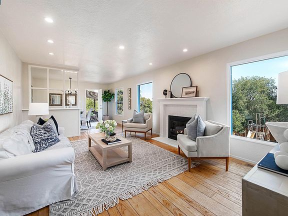 This charming, light-filled home is perched on a quiet corner lot with views of picturesque Mount Diablo and city lights! An inviting flagstone walkway, porch entry and canopy of majestic trees and colorful foliage will greet you as you enter this enchanting single-story home! A sun drenched family room boasts a wood-burning fireplace and mantle, recessed lighting, hardwood flooring, fresh paint; the spacious room looks out to a large, private backyard and lush surround of trees and foliage. The sharp kitchen offers a dining nook and views of the wooded front yard surround. Three light and bright bedrooms feature gleaming hardwood flooring, ample closets, overhead lighting and serene views out of each room. Updated with a new tub/surround, new flooring and hardware, the hall bath sparkles! Other recent upgrades include fresh interior paint, new designer lighting, a refreshed bathroom, and Napa style landscape plantings. A sunny corner lot and private and spacious yards boast mesmerizing views of Mount Diablo, an entertaining deck, and a large backyard with fruit trees (producing grapefruit, figs, and loquats), a play area, and plenty of space for additional backyard improvements including lawns, room for a swimming pool, vegetable gardens, additional dwelling unit, and more!