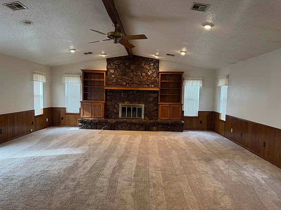 Several treesInground storm shelterPatio areaWork shed with electricWater wellFamily roomBeautiful fireplace