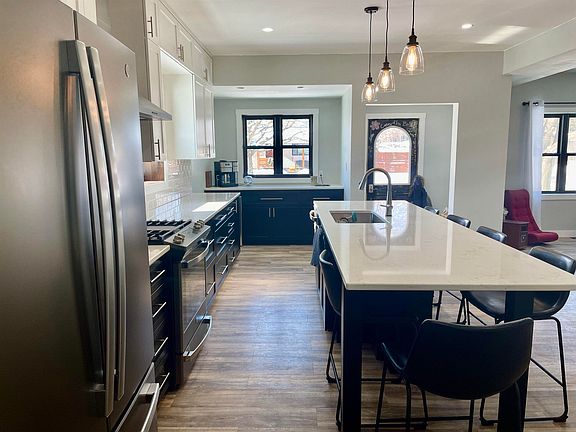This renovated home is just one block from the bike trail and a few blocks to downtown Decorah! This home features an open-concept kitchen and living room combo, quartz countertops, custom cabinets, and new appliances. Continuing on the main floor is a master bedroom/bathroom and a laundry room. The second floor has two bedrooms and a full bathroom. A brand new oversized 3-car garage has plenty of room for cars, storage, and even space to create a family room. Top this off with a spacious covered patio. Call today!