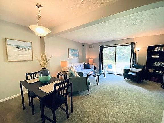 Enjoy maintenance free living in the Castle Creek Community. This unit offers many updates including flooring and paint. Move right in condition. Private patio that backs up to greenspace with wooded views. Appliances stay. HOA includes, pool, snow removal of streets and sidewalks, landscaping of property, lawn care, roof, and siding.