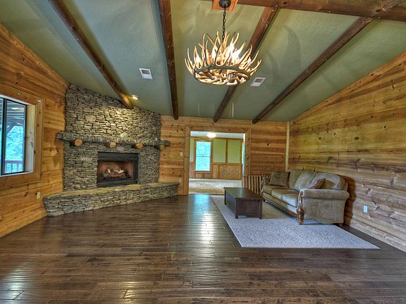Gorgeous setting! Imagine cool mornings sipping coffee gazing over this gorgeous private pond. This pond is full of Brim and Bass a fisherman's paradise! This cabin sits on 3+ gentle rolling unrestricted acres of peace and serenity. This cabin is close to the Toccoa River and is sitting less than 10 minutes to downtown Blue Ridge. This cabin is perfect for full time living , as a weekend getaway or would make a perfect rental. This home offers one level living with kitchen & living room with a stone fireplace, separate den with wet bar and wood stove..No FHA or HUD Looking for AS IS!