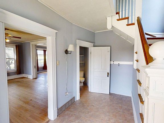TONS OF SPACE HERE! This charming 2 story home is located on over two lots with total lots measuring 124x140! Yard is fenced and also has alley access with a 2-car detached garage. This charming front porch leads you into this 5-bedroom, 3-bathroom home! You are welcomed into the home by an open staircase with old woodwork in the foyer. Wood floors and large windows are found throughout the home on both 1st & 2nd floor! 1st floor contains a 1/2 bath while 2nd floor features a full bathroom! Tall ceilings are located all throughout the home. Basement is a great place for storage and has two additional bonus rooms. All measurements are approximate