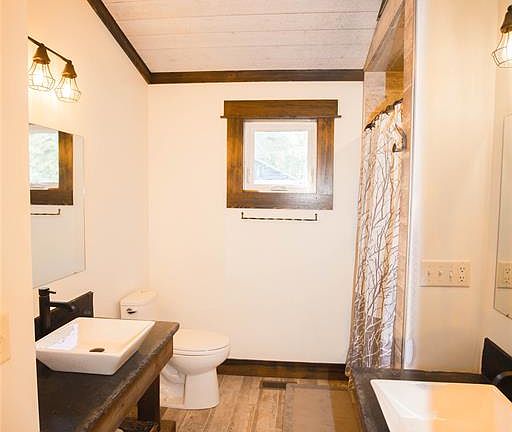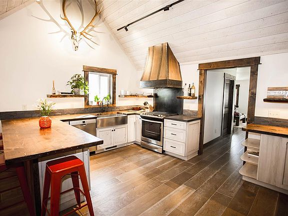 This Craftsman style house has been completely remodeled. Custom rustic remodel, builder's personal house. This house has history, originally 1880s railroad cabin. The original logs are exposed in the kitchen. Shiplap wood ceilings throughout the main level with exposed beams. Large wraparound front porch. 4 bedrooms/3 baths, media room in the basement. Three separate zones for heating and central AC. Large 14000 sf corner lot. 3 stall shop and ADU unit on property
