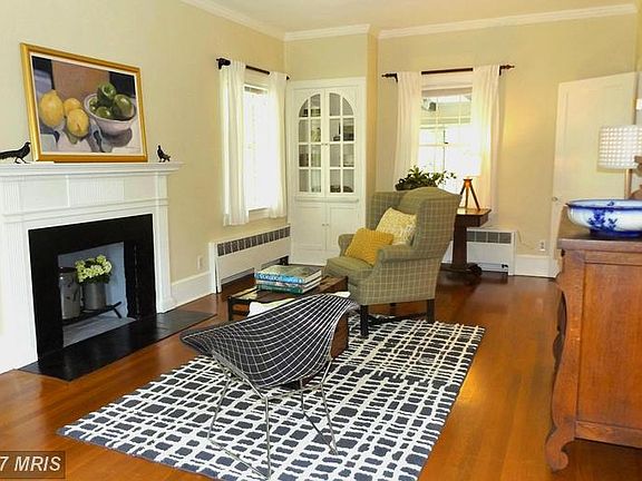 Meticulously-kept brick colonial w/historic grace! 2 min walk to Main St. Gleaming orig hdwd floors. Delightful kitchen loaded w/cabinets. Perennial garden incl dogwood, peonies, mature boxwood. Bright sunroom w/French doors. Cedar walk-in closet. Crystal rosette doorknobs. Vast & spotless unfinished bsmnt. 30yr roof installed ~08. Come relax on your side porch - birds love it here & you will too!