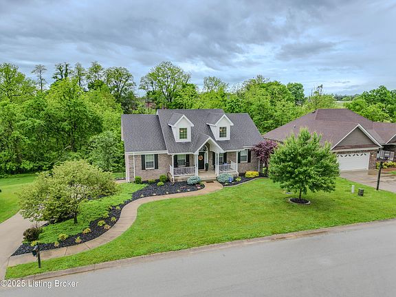 MOTIVATED SELLERS! Upscale comfort meets southern charm in this meticulously maintained and modern Bardstown beauty, nestled in the highly desired Woodlawn Springs community and minutes from the amenities of ''America's Most Beautiful Small Town!'' Boasting incredible curb appeal, the home's gently winding walkway guides you through tastefully manicured landscaping to the covered front porch and welcoming front door. Inside, the WOW factor is immediate as you step into the wide-open and inviting main living area, featuring tons of natural light, vaulted ceilings, wood flooring, and flows directly into the large eat-in kitchen. An abundance of beautiful cabinetry, expansive granite countertops, tile backsplash, and an island adorned by a custom boutique light fixture is sure to delight! Just off the kitchen is an oversized, well-appointed laundry room and french doors that lead outside to a large deck overlooking the aluminum-fenced backyard and private tree line.