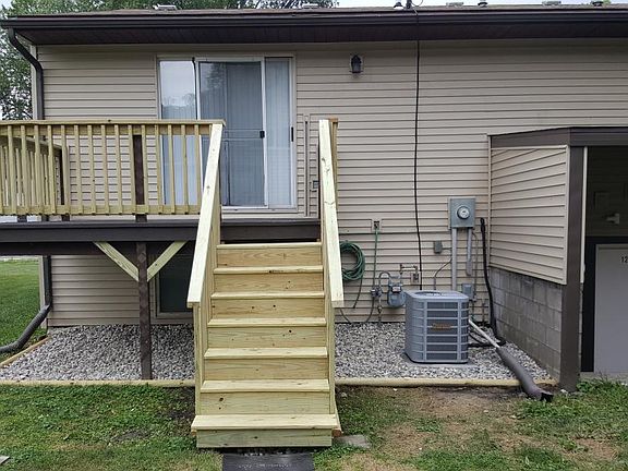 This unit is ready for showings We have a large 2 bedroom 1 1/2 bath 1300+ square foot duplex for rent in Chesterton. Lots of updates new 92% furnace and new central air installed a week ago. rear deck was redone this week new siding this year whole house was wrapped and insulated outside plus has spray insulated inside keeps heat and cold air in less nipscoUpper level large kitchen with stove and refrigerator large living room with wood floors full bath with laundry hook ups (dryer could be electric or gas) washer and dryer are not supplied. lever are 2 bedrooms with closets and 1/2 bathroom Unit is well maintained and clean. Close to downtown chesterton and express ways.Tenant is responsible for all utilities no pets are allowed off street parking.Unit will be available August 1st $800 a month with $800 security deposit with a 1 year lease. There is a $30 application fee for credit check Address is 116 n Jackson Blvd Chesterton IN There is a 2 1/2 car garage available with this unit for $75 more a month completely drywall with upper level.It could be for storage or Rec room. Garage has can lights in ceiling and new windows and garage door opener still working on garage but most is cleared out and will be ready by the 1st Please contact me at 2198084332 not always by computer to check messages