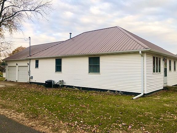 Large oak kitchen with appliances and dining area. Oversized living room. The bath features a jetted tub. Furnace and Central Air (2023). Steel Metal Roof. 24x26 attached (heated & insulated) garage with 1/2 bath, pull down attic, laundry and high ceilings. Patio and shed, all on a corner lot.