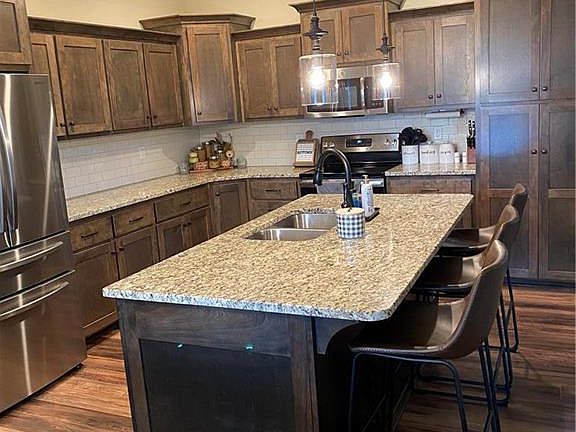 Super cute true ranch home with walkout basement in a golf course community in Kearney. Home features hardwood floors, kitchen island, covered deck with ceiling fan, 3 car garage, granite countertops, fenced in back yard, and much more. Close to highways and shopping.