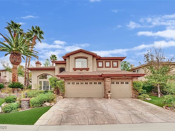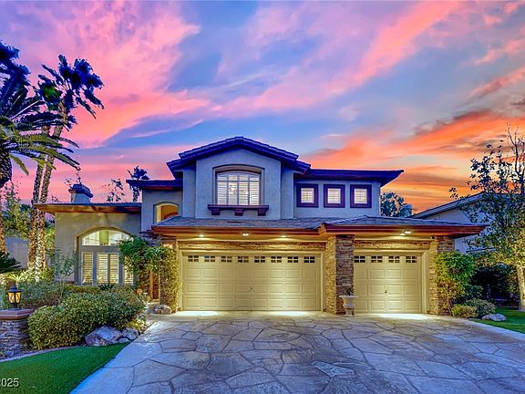 Step into the exclusive gated community of Talon Pointe! You can't beat this prime location in the heart of Summerlin. This upscale 3,570 home features 5 spacious bedrooms & 4.5 baths on a large private lot. You are immediately greeted into the home with its grand ceilings and impressive gas fireplace that flows into the formal dining area with new flooring. Chef's kitchen has an upgraded pantry, R/O in sink and has a huge island w/new quartz countertops/backsplash and furnace. Custom cabinetry along with a panel ready fridge makes the look seamless. Have an EV? The plug is built in. Primary suite has a large custom closet with a luxurious spa like bath. Secondary bedrooms are all generously sized, some with walk in closets. The backyard is truly an outdoor experience, designed for total relaxation & entertaining. Features a lagoon style pool and jacuzzi surrounded by lush landscaping w/new lighting creating tons of privacy with built in BBQ. Close to LV Ballpark, Red Rock & shopping.