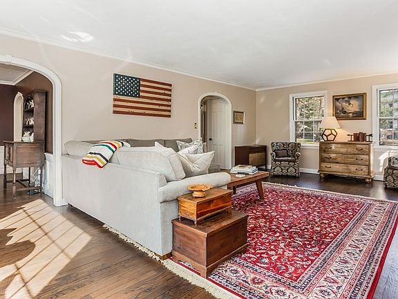 Classic BRICK colonial features wonderful proportions, custom millwork, newly refinished hardwoods throughout, great circular flow & inviting interiors. CUSTOM kitchen showcases freshly painted wood cabinets & trim making quite the impression- plenty of prep space on granite tops, basketweave tile backsplash, undercabinet lighting & suite of Miele appliances. Eating & keeping areas showcase exposed brick, vaulted ceiling w/skylights & slider leading to patio & inground, heated, GUNITE POOL & spa w/brand new pump & filter. Living room w/fireplace leads to 3 season porch & dining room w/2 custom corner cabinets & picture window framing lush, private landscape. Cozy den/library has 2nd fireplace & bookcases. 2nd floor features large master suite w/updated bath including custom cherry cabinetry & walk in, tiled shower, updated full bath w/nice finishes, 3 generously sized bedrooms & 5th ensuite bedroom over garage. Finished lower level playroom offers more space to enjoy. MUST SEE HOME.
