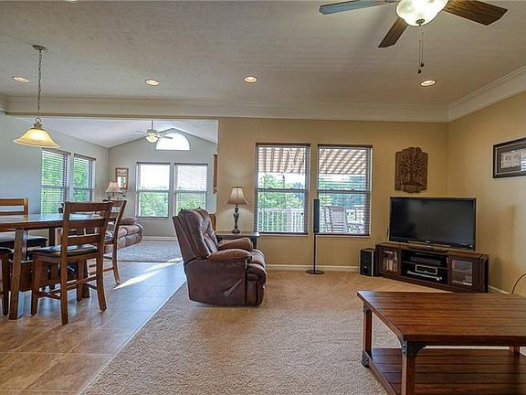 This gorgeous sprawling 3 bedroom 3 bath ranch is move in ready and exceptionally big on living space! The entry welcomes you into a wonderful open floor plan - large kitchen features ample cabinetry and counter space adjoining butlers pantry and dry bar pass through and a dining area in addition to the formal Dining Room. The multiuse Den/sitting area leads to the 20x10 deck overlooking trees and covered by a retractable awning. The lower level is simply amazing - absolutely humongous! featuring 2 separate finished areas, a bar/kitchenette area, Full bath, and additional 38x12 unfinished storage room AND a 11x10 storage garage (under the den)...walk out to the lower patio to enjoy privacy and relax! Convenient location close to shopping, restaurants, the airport and more! 1year home warranty included!