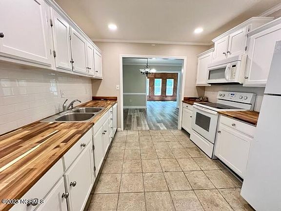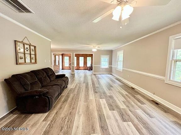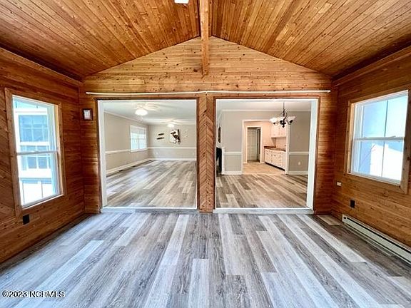 This lovely remodeled home is waiting for you! Updated in 2021 with NEW flooring, windows (sunroom), tile shower & vanity, recessed lighting and butcher block counters in the kitchen. Spacious open living with modern LVP flooring. Amazing sunroom with vaulted ceiling is where you will want to spend all your time. Wrap around porch surrounded by large yard with mature trees giving it a park like feel. Located just on block off the Chowan River with seasonal river views!