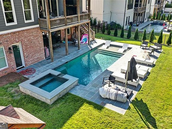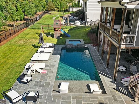 Welcome to 116 Owens Mill Place, a stunning modern home offering 6,345 square feet of finished living space across three levels with soaring ceilings throughout. The main level features a spacious bedroom and 1.1 bathrooms, a gourmet kitchen with quartz countertops, shaker cabinets, and high-end appliances, plus a dining room, an office, a breakfast area, and a family room that overlooks the beautifully fenced backyard, covered deck, and sparkling pool. Upstairs, you'll find four generously sized bedrooms each with its own full bathroom, an oversized laundry room, and expansive closet space-including a luxurious master suite with custom cabinetry in its walk-in closet. The fully finished 1,766 sq ft basement includes an additional bedroom and full bath-perfect for guests or extended family. Located in a small, exclusive subdivision of luxury homes where every residence boasts its own private pool, this property blends elegance, comfort, and functionality in every corner.