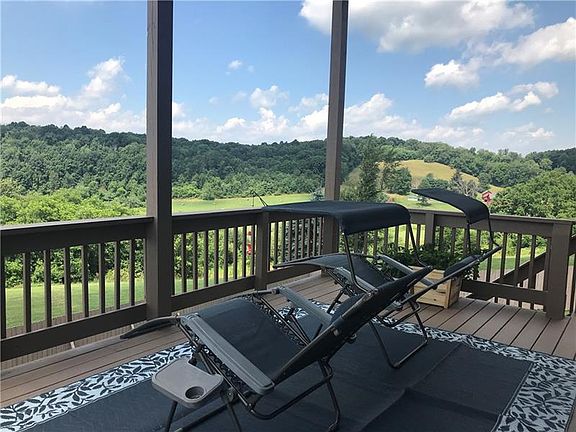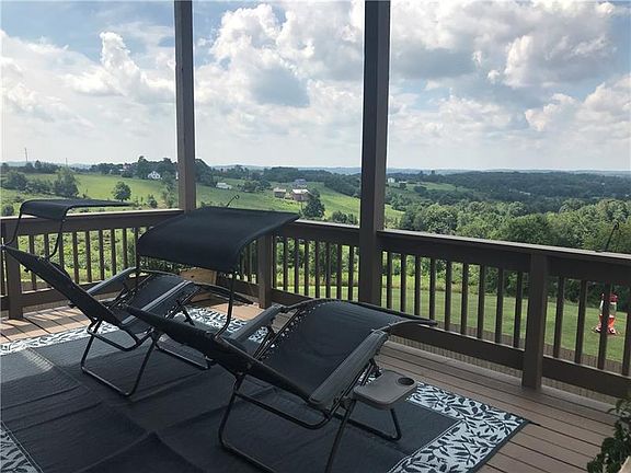 If you are looking for a private setting with gorgeous country views, with close access to I-79, look no further! This is a hard to find piece of property on 16.9 acres with a beautiful Chalet style home with floor to ceiling windows to accommodate the views beyond! Paradise Lane is a private lane shared by only two homes only 5 miles from Moraine & the lake! The brick and vinyl house is only 19 years old and has 3 large BDs, 2 full baths, an open floor plan with spacious room sizes and a full finished, walk out basement. From the moment you walk into the front door, you can see through the kitchen opening to the rolling hills of western PA. The 21x17 great room has been freshly painted and opens to the kitchen with custom cabinetry and ceramic backsplash. Finished family room, laundry room, and the fenced in backyard is an added bonus. Park like setting with concrete drive to the 2 detached garages. Brand new high efficiency furnace and A/C! Bring the horses!