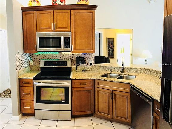 NO REAR NEIGHBORS!! WOW! Truly a jewel! This beautifully well maintained HEATED pool home is hard to find ! Can be vacation rental or used as private residence! 15 minutes to Disney. Home offers a NEW ROOF, ENTIRE NEW KITCHEN with high end new cabinets, newer stainless steel appliances, washer, dryer, new flooring throughout, AC has warranty until 2022. Newer double vanity in master bath, newly painted in and out,new pool screen enclosure. Home has great covered recently painted pool deck with beautiful spa backing up to a preserve. This home features active remote security camera system, nice ceiling fans, granite counter tops, additional attic with new ladder was added recently. The entire exterior landscaping was re-soded with new grass, peach trees, plum, orange and cherry trees as well as new sprinklers withing the past year! This home is currently owner occupied. PRIDE OF OWNERSHIP!
