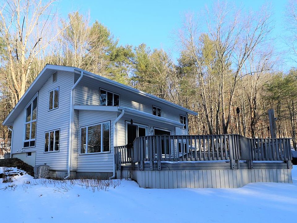This wonderful home sits on an incredible park-like lot at the very end of a quiet street. There's a gorgeous, huge Trex deck with an additional stamped concrete patio. The sunroom also looks out over this fabulous lot backing up to a babbling brook and private hillside views. The inside of the home has an open floorplan between the kitchen, dining, family, and sunrooms. Two gas log fireplaces make the home all cozy and comfy this time of year. The two bedrooms up share a Jack & Jill bathroom while the bedroom on the first floor has a bathroom right outside. $2,500 DECORATING REBATE!